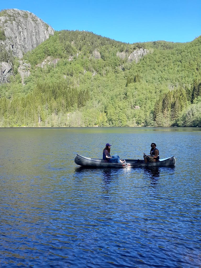 Vi har to kanoar liggande i Giskelivatn som kan brukes fritt av våre gjester.